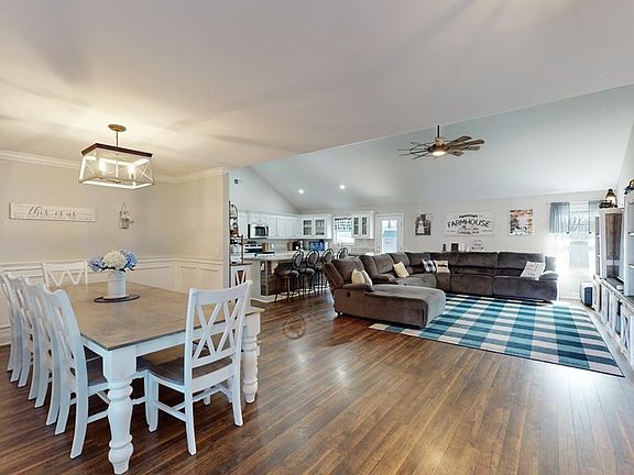 THREE CAR GARAGE plus four bedrooms in this all brick home built in 2020. Beautiful open floor plan includes foyer, dining room, GRTRM and eat in kitchen with vinyl plank floors. Great room and kitchen have vaulted ceiling. Beautiful kitchen with white cabinetry, granite, large island breakfast bar, stainless appliances and top of line refrigerator. Split four bedroom floor plan with master behind the kitchen. Master has an accent wall of white shiplap, large walk in closet and beautiful flooring in a large private bath with dual sinks in granite topped vanity, walk in shower, large soaker tub and a private toilet room. Nice size three secondary rooms and hall bath. Fenced yard on half acre, a front porch, a nice back covered porch, patio, fire pit, tankless water heater and a wired shop.
