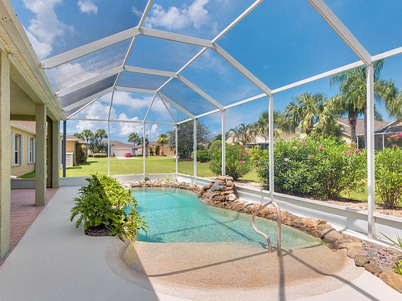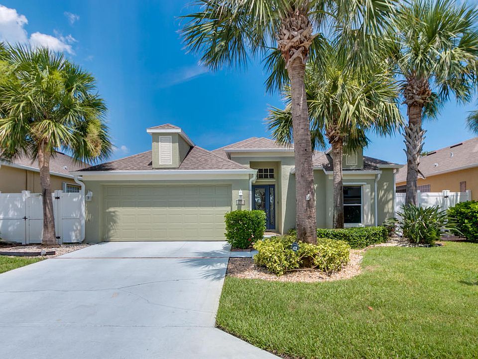 Immaculate pool home located in Gated Ocean Side Village. Lovely community with amenities, large community pool, tennis courts and basket ball courts. The home has open floor plan. Kitchen with Stainless Steel appliances, over looks the Dining room and living room. Glass sliding doors open to the screened pool and large covered lanai from living are and master suite.Spit bedrooms. The entire interior has been freshly painted and professionally cleaned. Private courtyard on side of house.Two cargarage.