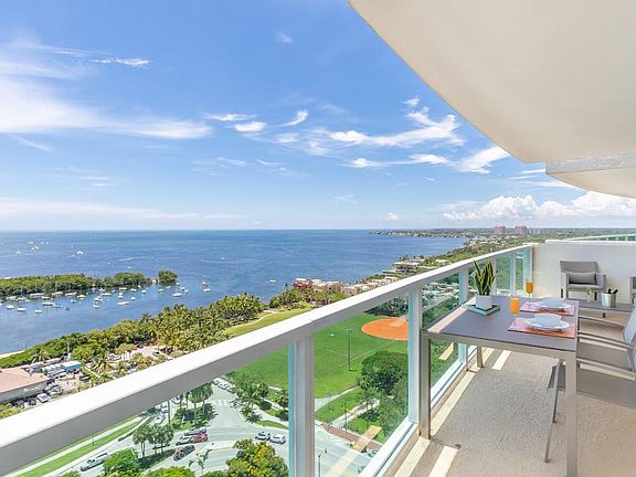 Gorgeous 180 views of the ocean, islands, and marina await you in this stunning corner condo located at the Arya Hotel in Coconut Grove. This privately owned, elegantly furnished apartment features a king-size bed in the bedroom, a master bath, and a spacious living room leading to a large 'L' balcony with sunbeds. Enjoy the unobstructed views of Biscayne Bay and the Dinner Key Marina from the wrap-around terrace. The condo is equipped with brand new appliances, including a full-size washer and dryer, and offers free covered parking in the same building. Feel at home in this beautifully remodeled Fall-2016 condo with a fully equipped kitchen featuring a large quartz countertop, refrigerator, stove, microwave, dishwasher, toaster, and coffee maker. The apartment boasts two Smart TVs, separate A/C controls for the kitchen and bathroom, and a real high-speed internet connection of 75Mb. Enjoy the pool and outdoor hot tub on the 8th floor with amazing views of the bay, where free towels are provided. Room service and dry cleaning service are available but not included in the price. The Fitness Center offers great views and squash courts, and there is a Business Center available for guests. Nestled in a quiet neighborhood, yet just steps away from CocoWalk with its shops, restaurants, and cinemas, this apartment offers the perfect balance of tranquility and convenience. A short ride will take you to Brickell, the financial heart of Miami, and Latin America. Nearby attractions include the Miami Museum of Science, Vizcaya Museum, Perez Art Museum Miami, and more. The reception at the hotel can provide suggestions and information on all the must-see attractions. Hotel Arya Coconut Grove has a 24-hour front desk, and guests will have full access to the condo. The pool and outdoor hot tub are located on the 8th floor, and the Fitness Center is on the top PH floor. This property is ideal for executives staying close to Brickell or Coral Gables, parents visiting University of Miami students, commuters to the numerous hospitals, or those seeking a weekend retreat by the ocean.