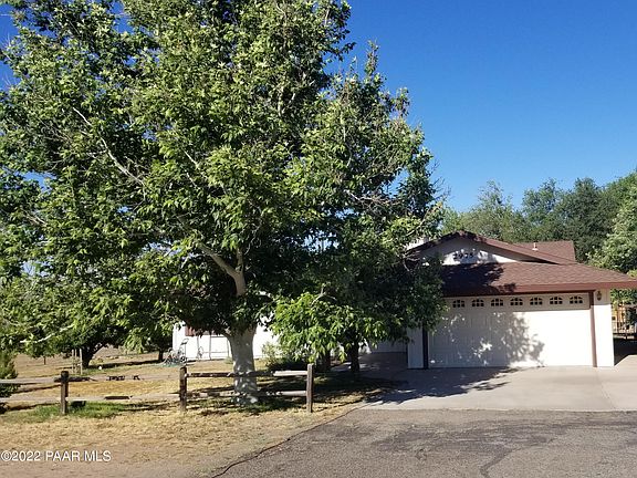 Turn Key in Ranch Community, Interior updates Completed in 12/22, Lovely 2.3 acre Ranch (just outside of Prescott) 3 bed 2 bath Single story ranch home with a split bedroom plan, duel sinks in master bath. 2nd Bldg. updated w/Electricity, (lighting & outlets) is a detached 3 car open garage with a 23ft X 12ft workshop w/lighting & electricity. Bring your RV & Toys. Attached 2 car garage +1 car carport . Custom built Chicken house w/screened run. Mare motel for horses/cattle or goats w/feeders & water stock tank. Entire Land improved w/drip irrigation; multiple trees, Grape & blueberry grove, 30ft greenhouse w/drip. 21 ft Steel RV awning, Private Well water & septic. 2 wood fireplaces! 50 Amp RV outlet, Ample parking for RV's/campers/trailers & toys. No HOA. Desirable Flat Land.