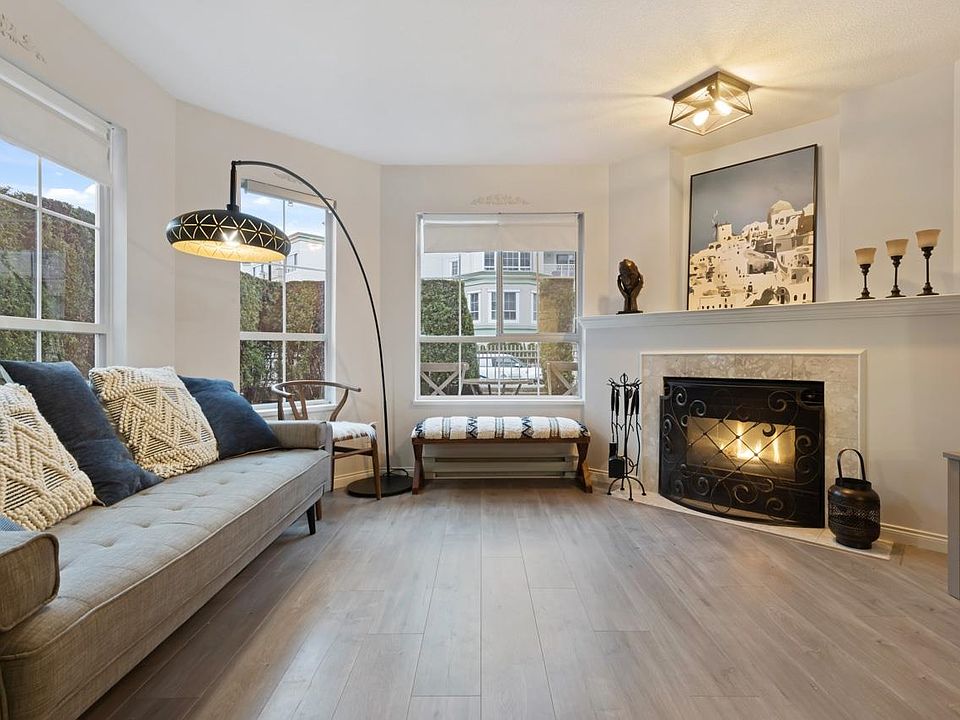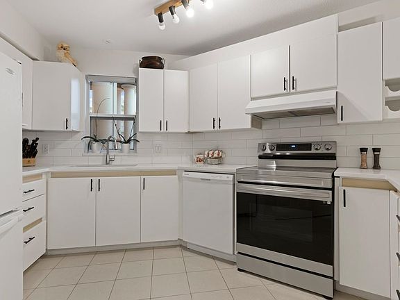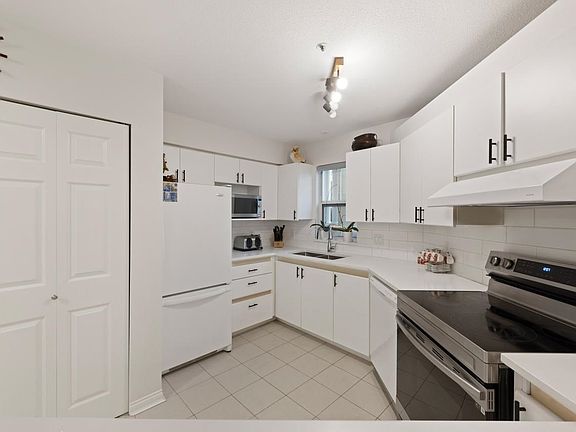 Welcome to the Jefferson, a sought after well run building in the heart of Coquitlam! This beautifully updated large 2-story corner unit offers 2 bedrooms, 2 bathrooms, an open kitchen, and living & dining flowing through to a private patio. Street access from ground level makes it easy to go to and from your car. A functional layout with no wasted space, including tons of in-suite storage & large walk-in closets, makes this home feel spacious & tidy. Recent updates include new flooring, paint, quartz counters, lighting, a dishwasher, and range. Nestled in a quiet cul de sac, but just steps away from Skytrain, Shopping, Recreation Centre, Lafarge Lake & Trails, this location is perfect! 2 large parking stalls & 1 storage locker included.