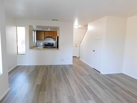 Spacious 2bdrm, 1bath two story condo in a well maintained development. New wood flooring installed downstairs and in upstairs bathroom. Living room is open to private small patio that overlooks a large hillside. Kitchen has large fridge and gas stove which opens to the living area. Upstairs has two bedrooms and separate bathroom with shower/tub and lots of storage. Master bedroom is spacious and has a balcony and plenty of closet space. Both bedrooms are very private. Large, private storage shed on the side of the condo for your use only. Lots of storage space in condo as well. BBQ area and large laundry room on the property for easy access. Plenty of parking. Great hiking trails on hillside next to development. Non smoking please. Will consider a small pet. Water and Trash included. Close to downtown and shopping. to view this great property. Owner pays for Water, Trash & Sewer