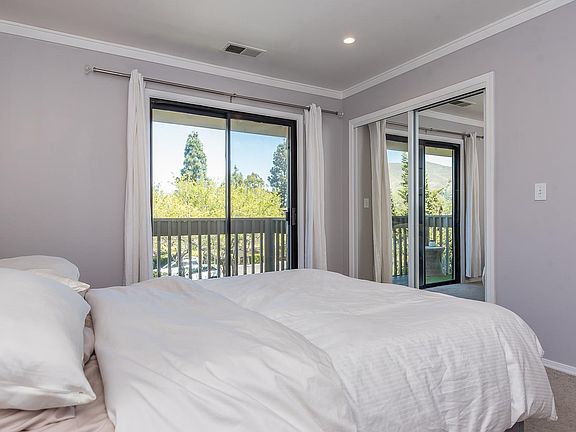 Spacious & Private 2bdrm, 1bath two story condo in a well maintained small development. Recently upgraded with wood flooring in downstairs living area and upstairs bathroom. Living room is open to private small fenced backyard with lots of privacy and views of the hillside. Kitchen has gas stove, refrigerator, lots of cupboard space and is open to the living room. Master bedroom has a balcony and plenty of closet space. Both bedrooms are very private with a full bathroom in hallway. Large, private storage shed on the side of the condo for your use only. Lots of storage space in condo as well. BBQ area and large laundry room on the property for easy access. Plenty of parking. Great hiking trails on hillside next to development. Non smoking please. Will consider a cat. Water and Trash included. Close to downtown and shopping. Tenants pays electricity, gas and internet