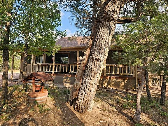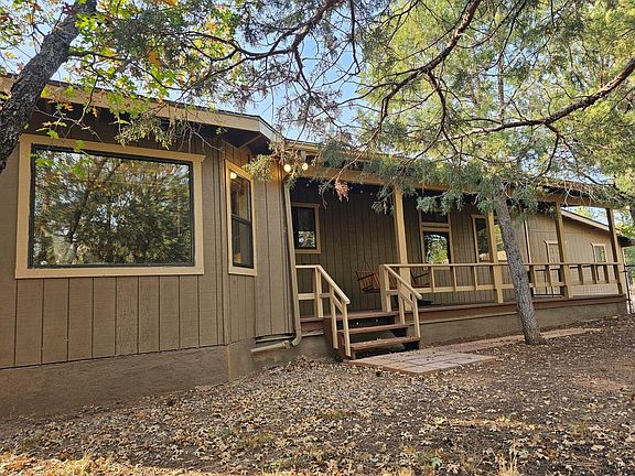 Nestled among beautiful trees and surrounded by amazing wildlife, this cozy getaway in Happy Jack, AZ, offers the perfect mountain retreat. The home features an inviting open floor plan with a comfortable bedroom and a versatile small guest room that can serve as an office. The spacious laundry/mudroom adds to the practicality of the layout.