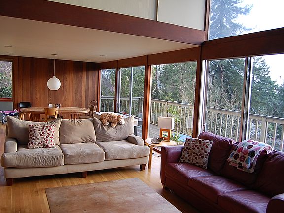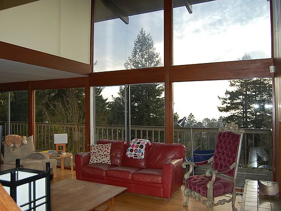 Striking dramatic Post & Beam Modern Design c. 1959 Takayanagi AIA. Beautifully updated kitchen & baths. Loft-like living room, walls of glass look out to the Golden Gate. Gorgeous home. A true gem. Featured on Curbed.