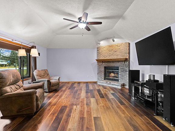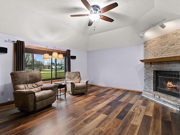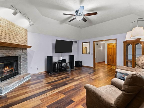 This all brick ranch features a large living room with vaulted ceiling and a gas fireplace. Beautiful brand new flooring throughout just completed Jan of 2024. Fully applianced kitchen open to dining area, and also has countertop bar eating space. 3 spacious bedrooms. 2 full and one half bath. A beautiful 17 X 11 four seasons room brings the outdoors into the living space. Large driveway and 2 car garage with extra workspace. Full attic with pull down stairs. 10 X12 storage barn. Vinyl privacy fence. Buyer to verify schools.