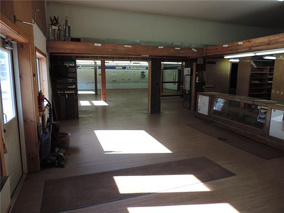 Business opportunity in the very high traffic/vacation area of Webb Lake. This building offers almost 8000 sqft of indoor space with 2600+ sqft of showroom area. There is a 1890 sqft full service heated shop area and a 20'x70' lean to off the south side for dry storage. The main building you could possibly remove all the interior walls to make a huge storage facility out of it. The property consists of 2.36 acres and has roughly 1.8 acres of lockable fenced in area. Bring your ideas and work where you play! This property is currently zoned Residential but has been used for commercial purpose in the past. For commercial use you would need a Conditional use permit or apply for rezone through Burnett County Zoning.