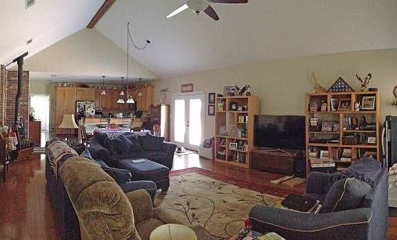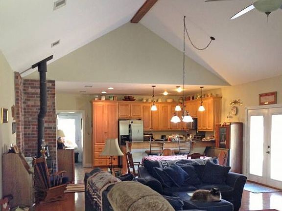 Custom home with large open floor plan. Living and dining area is 20x30 with cathedral ceiling. Freestanding wood stove in living area. Wood floors in living room, dining, and all bedrooms. Kitchen, bathrooms, and utility room have ceramic tile. Counter tops in kitchen, bathrooms, and utility are granite. Master bath has Jacuzzi and separate shower. Large closet in Master bedroom. Separate 24x24 workshop with 24x32 carport that is set up with electricity, water, and sewer for a travel trailer.