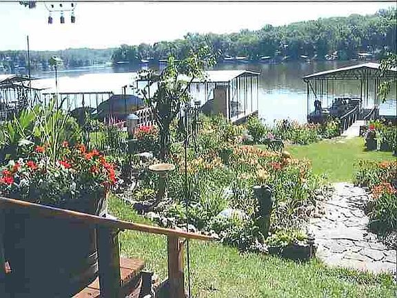 Waterfront home on Lake of the Ozarks. 3BR Home with concrete parking area. 2 well covered dock. 2022-04-26