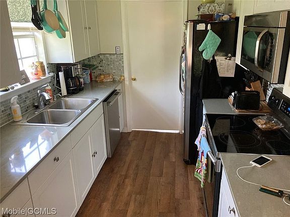 Very nice, 3 bedroom 2 bath, home in a fantastic West Mobile subdivision. Low maintenance vinyl siding. The large kitchen features white cabinets, quartz counter tops, stainless steel appliances, and tiled backsplash. Lovely laminate hardwood floors throughout. Nice size Great Room with plenty of wall space for your furniture and big screen TV. Over-sized Primary Bedroom made for large furniture. The home has a large backyard with a storage building. USDA financing available, which is perfect if you have limited funds to purchase a home.