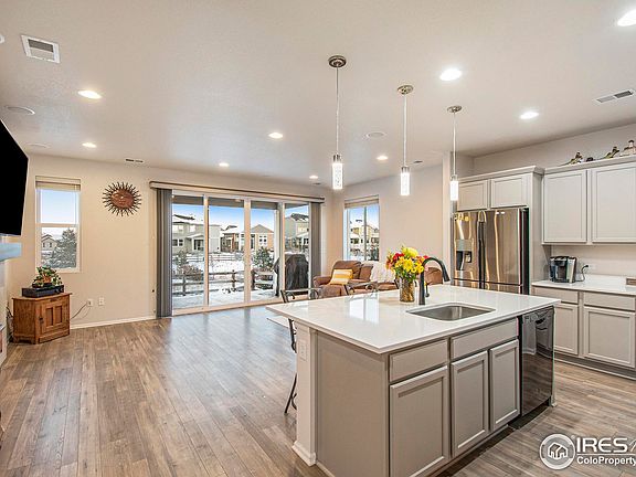 Price Improvement! Better than new, this Move in ready 2 year old home Lakes at Centerra beauty is close to everything with ALL the amenities! Private backyard and porch backs to open space and trails. Open layout with tons of natural sunlight, quartz counter tops and tons of modern updates including a gas fireplace. Primary bedroom has a large walk-in closet and double vanity. Another bedroom, 3/4 bath and a flex space for an office or dining area is perfect for maintenance free living. Complete with a fenced backyard and located on a Cul de Sac. Living in this neighborhood is truly a Colorado experience with access to miles of trails, lakes, Clubhouse with splash pad and swimming pool, outdoor concerts, gardening classes, wildlife habitat, conservatory, mountain views and much more. Plus Centerra shopping and restaurants. All for under $500K!. Take advantage of the dip in rates and make an offer today!
