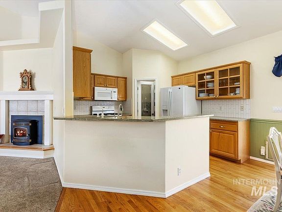 This immaculate single level home with large 4 car garage and beautiful backyard is perfect for entertaining. This home has been updated with granite countertops, tile back splash, carpeting, paint, and flooring throughout. Showers updated by Bath fitter. Come and experience this tranquil back yard space perfect for enjoying the outdoors. Oversized patio runs the width of the house. With no backyard neighbors, sit outside and enjoy the beautiful water feature and year around creek. You can put your green thumb to the test with the large garden space and feed the visiting ducks. Large 4 car garage with ample storage, bring the toys. Home has had additional insulation blown into the attic space. Property includes a 10x6 shed, pellet stove and a water softener. Conveniently located near shopping, restaurants, and amazing city parks.