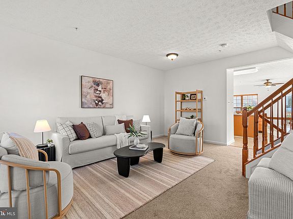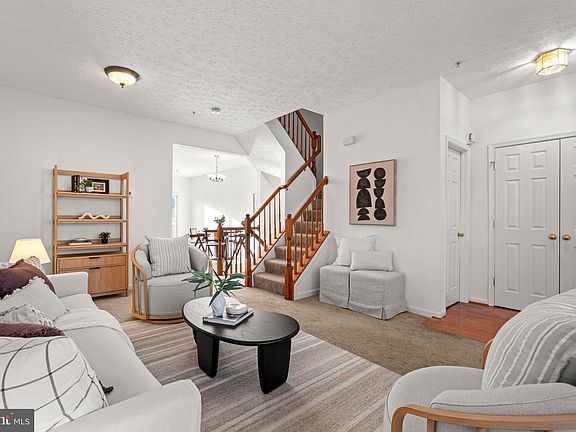 Welcoming townhouse residence offering 3 bedrooms, 2 full bathrooms, 2 half bathrooms, and 2,244 finished square feet in desirable Autumn Run. The main level features a foyer complete with a powder room, a coat closet, and hardwood floors that directly open to the spacious living room, accented by a charming bay window. Continue into the open-concept and sunny dining and kitchen area, where the dining area provides slider access to the back deck. The eat-in kitchen is equipped with a breakfast bar, a center island, a pantry, chic stainless steel and black appliances, and ample cabinet and counter space—perfect for cooking and everyday living. Upstairs, you’ll find three comfortable bedrooms, including the spacious primary suite with a sitting area, double walk-in closets, and a recently refreshed private bathroom featuring double sinks and a large corner soaking tub. A second full bathroom is centrally located and serves the additional bedrooms. The lower level offers even more space with an expansive recreation room, a versatile bonus room ideal for guests or a home office, a powder room, and a storage area with laundry facilities. Outdoor living includes a deck with stairs leading to the fenced backyard, which backs to open green space and a scenic trail. Community amenities include well-maintained common areas, picnic spaces, playgrounds, and two reserved parking spaces for residents.