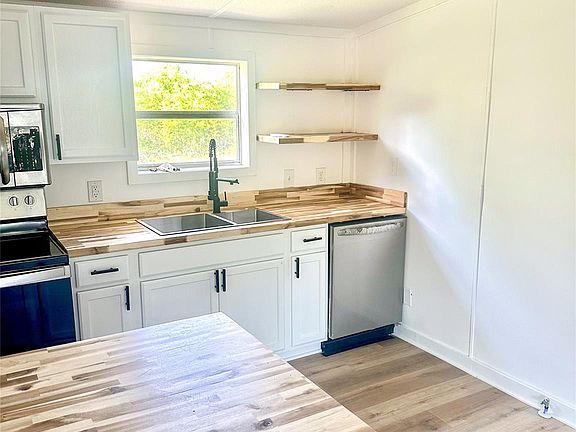 Room for a gardenStylish cabinetryUpdated flooringNeutral paintOpen floor planButcher block countertopsPrimary suite
