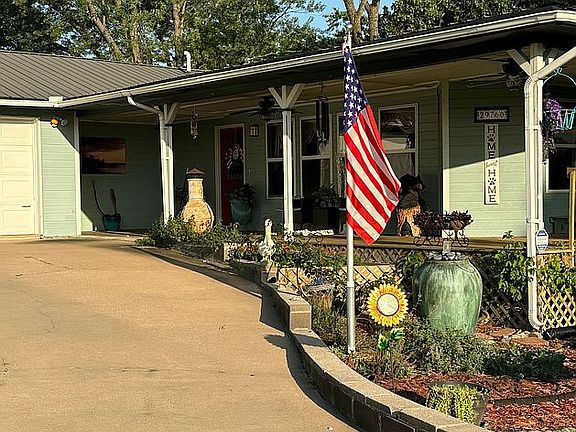 See this charming waterfront home on Monkey Island! This inviting property features two spacious bedrooms and two full bathrooms. The living area and open kitchen are bathed in natural light, thanks to the many windows that offer breathtaking views of Grand Lake. A cozy sunroom or office, also adorned with windows, provides an ideal spot for lake-gazing. Step outside from either the sunroom or the living area onto a gracious wrap-around porch, where you'll find beautifully maintained flower beds. This home boasts over 400 feet of stunning shoreline views right from the front, ensuring you never miss a moment of the lake’s beauty. The lake is just a few steps from your front door. Situated on a generous lot, this home includes a convenient carport for parking your jet ski or boat in the shade. Additionally, there is a lovely patio area featuring a large pergola, ideal for outdoor dining and relaxation. Access to a private community boat ramp a half mile from your driveway! Activities are just a short distance away. This home is a short golf cart ride to the new Battlefield Golf Course and minutes to Shangri-la and other Monkey Island restaurants. Don’t miss out on this lakeside gem – it won’t be on the market for long!
