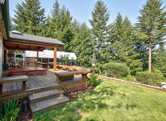 Beautiful Amazing 2 Private View Acres. 3 Bedrooms & 2 Full Baths.Completely Remodeled Baths & Kitchen in "2009" With Corian & Tile Splashback.New Heat Pump in"2005" Quiet and Secluded with 36x20 Deck that looks like you are in a Cabin. Sunken Hot Tub in the Deck. Lots of Garden Areas & a Green House. 24 X 24 Garage with 220 & Lots of Storage.On a Private Drive and only minutes to Newberg & Hillsboro.NEWBERG SCHOOLS.