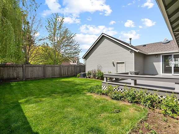 Charming corner-lot gem in the heart of Wilsonville's Merrifield Park neighborhood! This beautifully maintained single-level home features an open-concept layout with vaulted ceilings and an abundance of natural light. Step into a spacious living and dining area that flows effortlessly into the updated kitchen perfect for gathering and entertaining. Both bathrooms have been stylishly updated, and the home features a seamless indoor-outdoor transition onto a brand-new TimberTech deck ideal for summer evenings and outdoor dining. The layout is smart and functional, with all bedrooms located on one level. The home sits on an 8,305 sq ft corner lot with low-maintenance landscaping, landscaping services included in the rent for added convenience. A side-load 2-car garage enhances both curb appeal and privacy. Central A/C is included for year-round comfort. A thoughtfully designed home in a peaceful, established neighborhood ready for you to move in and enjoy.