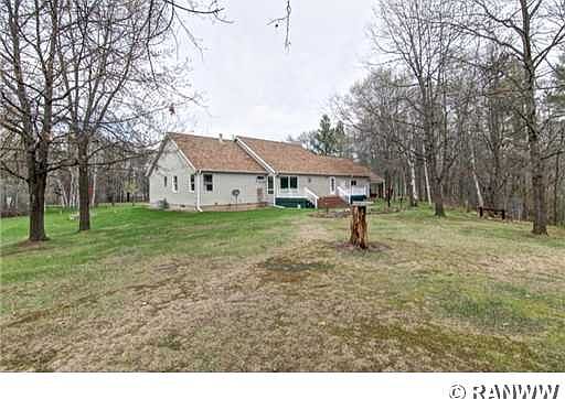Nestled along the Creek side - well maintained ranch style home. Spacious private deck faxes the backyard. Huge pole building for all the toys (great storage). Tastefully decorated landscaping around the property. 7 miles to Chetek-45 minutes to Eau Claire. Home offers large eat-in kitchen, spacious living room, 1st fl laundry, 3 bedrooms on main level, main bedroom has own bath & walk-in closet. 2014: new carpet. 64x40 pole shed w/electric & sliding door. 24x14 carport. 24x24 attached garage