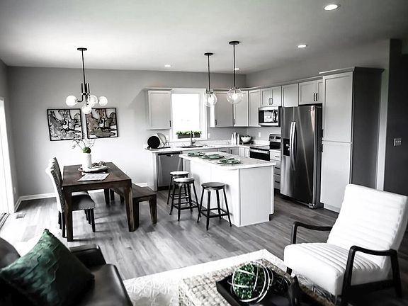 This new construction home by Granville Custom Homes boasts an open floor plan perfect for modern living. With luxury finishes and attention to detail, this home offers both style and comfort. Featuring stainless steel appliances, a center kitchen island, and luxury vinyl plank flooring throughout most of the main level, this home is designed for both beauty and function. Enjoy the unique trayed ceilings in the entryway that provide a grand first impression. The primary bedroom suite includes a spacious walk-in closet and an ensuite bath with a sleek, modern shower—your own private retreat. The main floor laundry adds convenience, making daily tasks a breeze. The home comes complete with sprinklers and sod included in the purchase, so you can enjoy a lush, green yard without the hassle. The basement offers the opportunity for additional living space, which can be finished at an additional cost to suit your needs. Pictures are a likeness to the new build, scheduled to be completed April 15th.