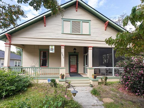 Captivating early 20th century bungalow in happening East Point. This delightful three-bedroom, two-bath charmer has been updated with attention to the things a new owner does not want to worry about: new appliances and most systems, a new roof and freshly re-pointed foundation, new back porch, a new front porch floor, and an exterior freshly painted in period appropriate colors. As you enter, you will see that the front entry parlor retains its original round stained glass window.Beyond, the second front parlor, spacious dining room, updated kitchen, den, primary bedroom and second bedroom all feature 10 foot ceilings, and large, light-filled windows. The dining room and kitchen feature handsome sustainable cork floors,with original heart pine throughout the rest of the house. There's an inviting screened corner porch, and--a rarity for the neighborhood--a detached, two-car garage. One secondary bedroom is currently used as an office and has its own entrance to the porch. Enjoy easy access to downtown, midtown, Decatur and beyond, as well as the airport. Just 4 blocks from MARTA and downtown East Point, this home is minutes away from the shops and restaurants of College Park, Tyler Perry Studios, and a quick dash to/from Hartsfield-Jackson. Close to Center Park, a new dog park at nearby Sumner Park, and near recreation and fitness centers as well. A connection to the West Side Beltline Trail is in the future. Don't miss this opportunity to catch the wave of all that's developed and still to come in East Point!