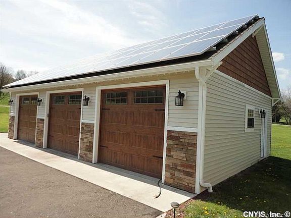 Beautiful country setting for this immaculate ranch, featuring great room effect with cozy gas fireplace in living room, dining area & sparkling kitchen with island for extra working space. Kitchen also includes a pantry for storage. Great M. bedroom suite including large bath with soaking tub plus shower & walk-in closet w/built-ins. Large hallway leads to other bedrooms with built-in desk & first level laundry room. Full walk-out basement also plumbed for extra bathroom. Lg. solar system included plus whole house generator. Large 3 car garage w/overhead storage plus extra lg. storage bldg.