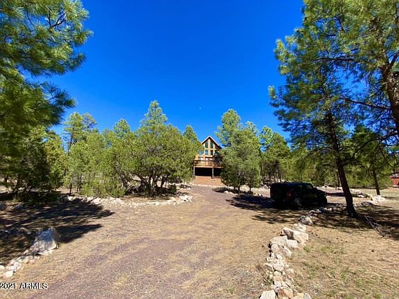 Cozy! Adorable! Perfect! Words you'll use after seeing this one in person! This heavily treed .59 acre parcel features a circle drive w/ room for your RV! The curb appeal is stunning, providing a perfect 'cabin in the woods' feel! Half the deck is covered, the other half is open, allowing you to take in the stars at night! Enter to find a Great Room with vaulted T&G ceilings, wood laminate floors, & stone fireplace. Lots of windows provide natural light & tall pine views! The kitchen has S/S appliances & abundant cabinet/counter space. D/S you'll find BR #1 and BA #1. Notice the real log railing as you head U/S to find a Loft, BR #2, & BA #2. Propane for the winter & ice cold AC for the summer! Plenty of space to add a garage if you desire! Best of all, this is being sold FURNISHED! Hurry!