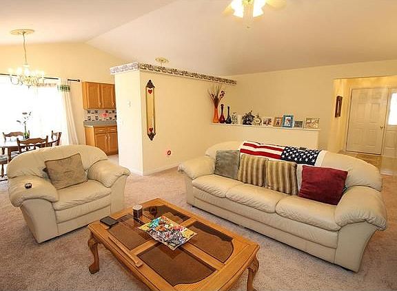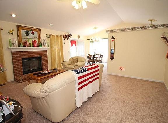 Great neighborhood! Come and see this Adorable ranch style 3 bdrm, 2 full bath home . The spacious open floor plan offers vaulted ceilings, gas fireplace is located in the living room is perfect for entertaining friends and family. freshly painted interior nice and bright, newer carpeting (2017) in bedrooms, living room, dining room and hallways. white 6 -panel doors, ceiling fans, , main floor laundry, Bay window, Master bedroom suite w/ walk-in closet, bath w/ double sinks, garden (jet) tub & separate shower. backyard is level and partially fenced. low maintenance exterior, vinyl siding, brick front, cozy covered porch and much more! unfinished basement with rough in bath is ready for your personal touch. sum pump. newer roof, gutters & downspout.Home warranty included. washer/dryer and refrigerator stay AS IS .very well maintained Home. convenient location in a quiet Subdivision, close to major roads, highways, shopping, restaurants... and just a few minutes from Hwy 364!