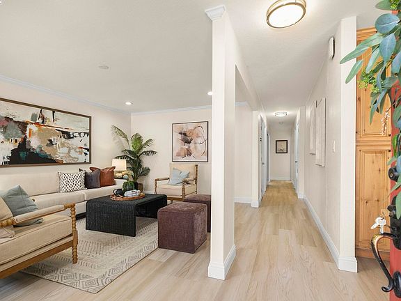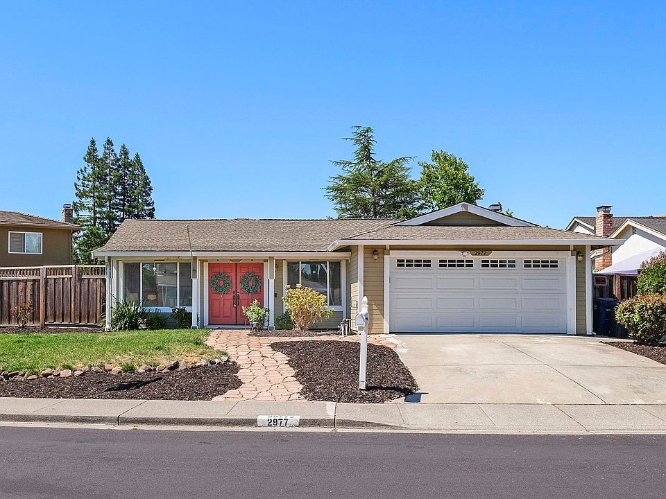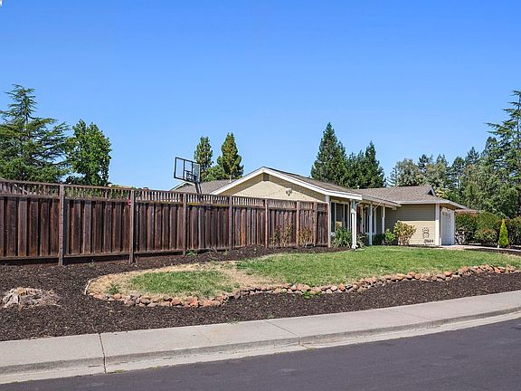 Charming updated one-story rancher. K-12 schools in highly rated San Ramon Valley School District. Remodeled kitchen with granite counters, beautiful cabinetry & recessed lighting; kitchen opens to family room with extra cabinetry & cozy fireplace. Spacious living room. Dual pain windows, New carpeting and laminate flooring. Updated master and hall bath. Freshly painted, staged & ready to go! Large backyard, & side yard; Possible access for your RV or add an ADU, lot size of 7,476 square feet. Close to Athan Downs Park & close to San Ramon's new city/downtown center.. Convenient commute location. No HOA a plus.