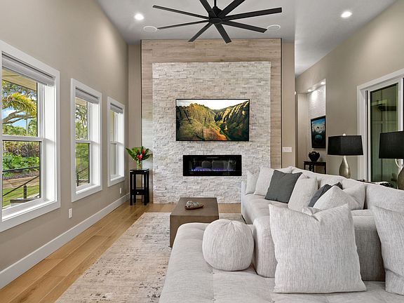 Located in the sought-after Kōloa Estates community, 2977 Pua Alani Place is a newly completed home offering modern design and island elegance. Set on a private half-acre lot (21,780 sq. ft.), this 3,100 sq. ft. property includes a 2,600 sq. ft. main residence, a 500 sq. ft. elevated guest house, and over 1,800 sq. ft. of outdoor living space for seamless indoor-outdoor living.<br><br>The home features 12-foot ceilings in the great room, 10-foot ceilings throughout, large-plank style porcelain tile, custom grass cloth wall treatments, and high-end finishes. The chef’s kitchen is equipped with Spanish quartz countertops, GE Café appliances, a 36” induction cooktop, and pot filler. Sliding glass doors open to an outdoor area with built-in grill, sink, wine cooler, Bluetooth lighting, and a retractable projector screen. A second area includes a BBQ, smoker, outdoor TV, shower, and seating.<br><br>With four bedrooms, 3.5 bathrooms, and a custom library, the layout balances private and communal space. The primary suite opens to a covered lanai and includes a spa-like bath and walk-in closet. The guest house offers a private suite with full bath, split A/C, lanai, and separate entry.<br><br>The oversized garage features two refrigerators, washer/dryer, shelving, and five windows. Below the home, 475 sq. ft. of storage space includes concrete floors, lighting, and power.<br><br>Additional features include 8’ Douglas Fir doors, Milgard windows, a 10-panel PV system, Tesla Powerwall, CAT-6 wiring, ORBI Wi-Fi, full AV system, and Ring security. Lush landscaping, landmark monkeypod tree, and a hand-built rock wall complete this exceptional estate.