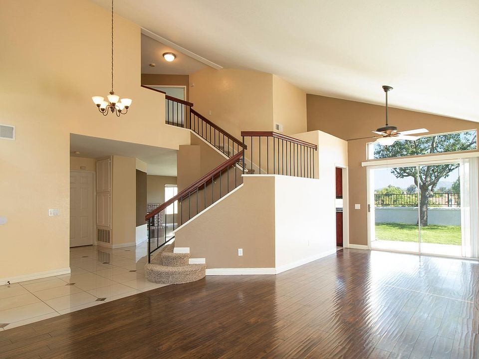 This beautiful 4 bedroom home is centrally located in Temecula near the Promenade Mall. Upstairs, there is the master bedroom with attached bath, including dual vanity, and walk in closet, along with 2 other bedrooms with a Jack and Jill bathroom between them. Downstairs, there is one bedroom and full bath. Bathrooms are upgraded with tile, fixtures, and granite counters. The kitchen is also upgraded with granite counters, stainless steel appliances, and beautifully stained cabinets. The living and dining area as well as the family room have been upgraded with wood laminate flooring. New carpet has been installed in the bedrooms and hallway, including the stunning staircase. There is a 3 car attached garage. This property is also on a cul-de-sac. Trash included
