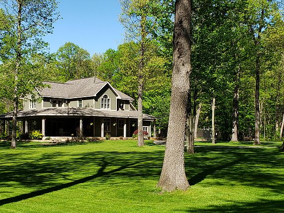 Who doesn't love a wrap around porch! The perfect home for those looking for lots of living space indoors, and outdoor entertaining space that doesn't end. Fantastic gourmet kitchen with all stainless appliances including a built in oven in addition to the range. Main floor Master bedroom and bath with whirlpool tub, walk in closet and a hot tub right outside on the porch. Three more bedrooms, two baths, family room (and two exterior patios), 2nd laundry room, and another huge walk in closet on the second level. Attached 2+ car garage, plus an additional 40 x 30 barn with finished upper level. Basement is partially finished, and offers the potential for even more living space! So many special amenities - just too many to list them all! Less than 1/2 a mile to the Little Manistee River.