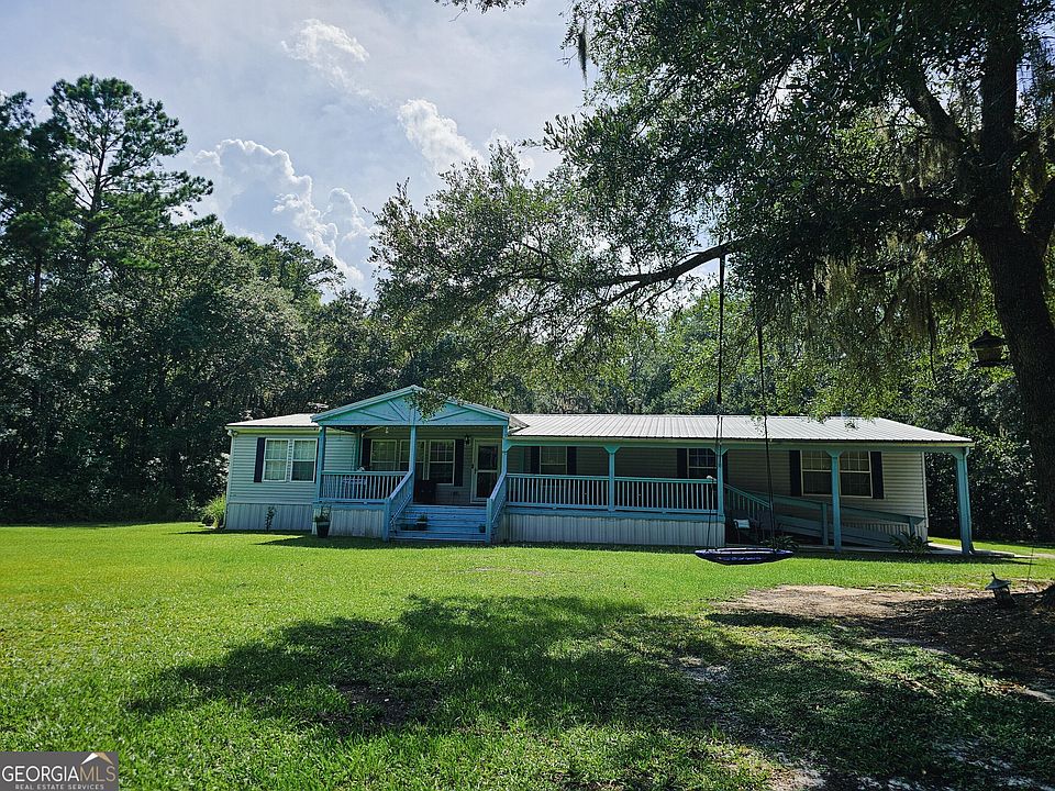 STAR GAZERS DELIGHT! This property is far enough away from the big city lights (yes, even Buc-ee's) that you can enjoy the stars and gaze to your heart's delight! This 4 bedroom, 2 bath home boasts two living spaces, one with a working wood burning fireplace, a built in desk area in the hallway, a separate large primary bedroom suite, and a large covered front porch. This 1 (one) acre property is 8 miles from Darien where you can enjoy the best seafood restaurants in the area, and 5 miles from Blue N Hall Marina for your recreational pleasure. The dishwater, refrigerator, and water heater were replaced in 2022. The front porch was painted and weatherproofed in 2023.