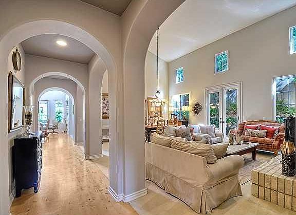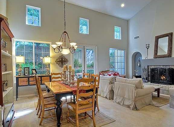 Serene 'secret garden' overlooking Rancho Carrillo Park with only 1 neighbor. Lives like a single story with M/B and secondary bedrooms on main level. Upstairs is optional bedroom/loft with 3/4 bath and extra storage. Total of 3.5 baths. Vaulted ceilings, built-ins and upgrades add up to unique "see to believe" property. Lovely covered patio with additional sitting areas. Large side yard.