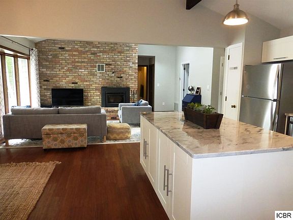 This year 'round Pokegama Lake home has been beautifully refurbished in ways that you'll really appreciate - All new kitchen from the flooring on up including appliances, lovely tiled entry, new bamboo flooring, new light fixtures, new shower in the master suite, new vanities in both baths, and clean-burning Napolean fireplace insert. Enjoy wide open views of Pokegama Lake from the living room picture window, full-length deck, and screen room. Backyard leads to the stairway down to a firm sandy beach. Huge garage for lots of storage, and less than 10 miles to town. Easy care interior will leave more time to enjoy!