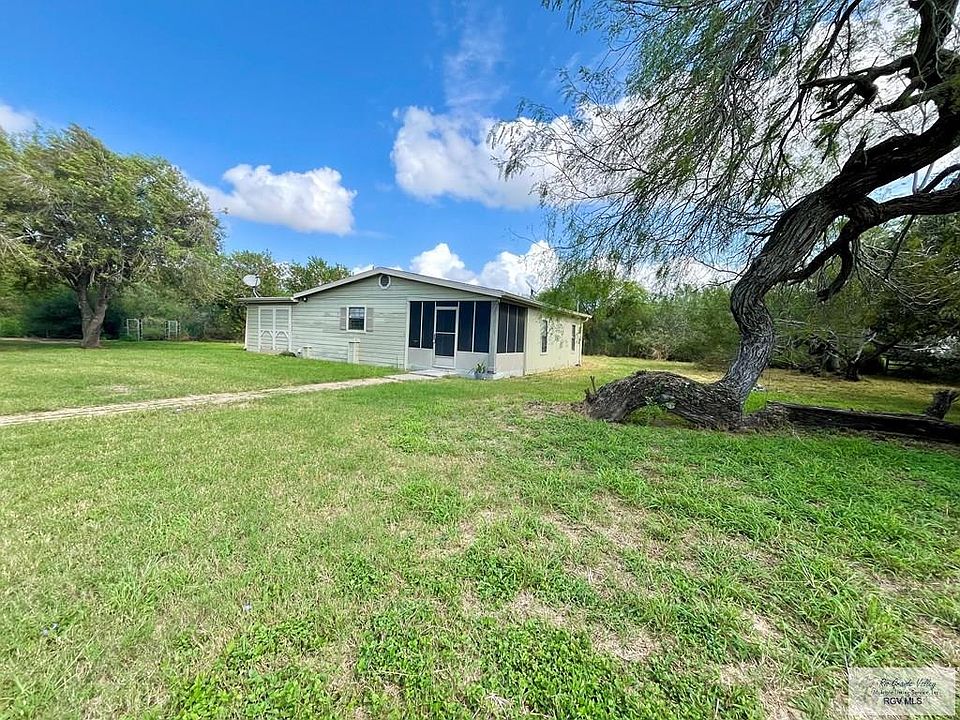 2 bedroom 1 bath updated home in the country on 1 acre. Electric is with Magic Valley, Water is with Military Highway Water. nice screened in porch that takes you directly to the kitchen and/or living entrance. Large open living area with wood flooring tile, large kitchen with tile flooring-washer/dryer hookups, refrigerator and electric stove, from the kitchen you will step into another enclosed garage playroom/office (no closets) and from there another sunroom with outside access. 1 large master bedroom and guest bedroom. 1 full bath (shower only). Tenants maintain lawn, pay all utilities. No pets permitted - no livestock permitted. Security deposit $1000