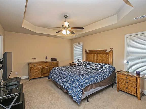 - MASTER BR DESC: Ceiling Fan, Carpet, Walkin Closet, Trey