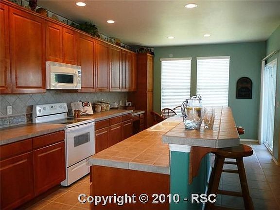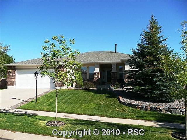 Immaculate ranch, flowing flr plan*Low maintenance stucco & brick ext*Great rm w/10 ft ceilings, gas log fp & blt-in entrtnmnt center*Lots of upgrades*42' maple cabinets in kit w/desk space,2 pantries,ceramic tile flr & countertops w/decorative backsplash,lrg eating nook w/walk-out to over-sized concrete patio*Master has sitting space,5 pc bath w/ceramic tile flrs & countertops & walk-in clst*Baths have ceramic tile flrs*Pikes Peak view in back yard*2' blinds*Next to walking trl, cls to schools