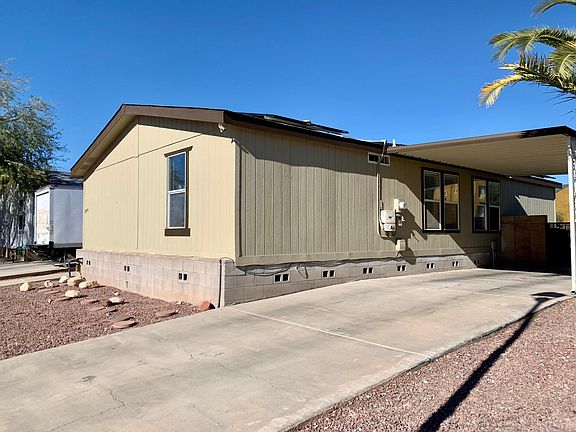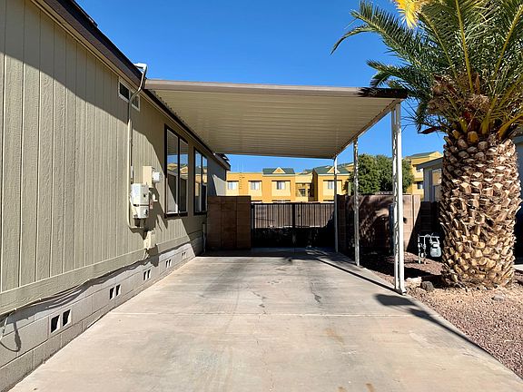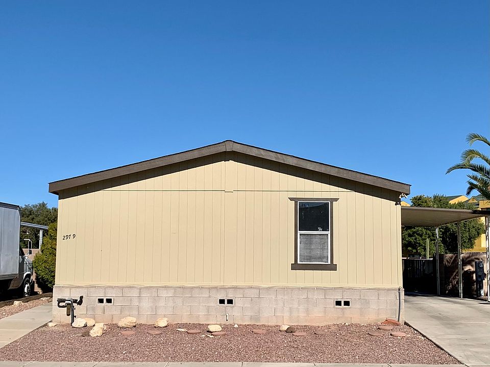 3 Bedroom 2bath Manufactured home with in-ground Pool and solar panels Home located in quiet community New granite kitchen countertops with a breakfast bar island Stainless steel appliance: Gas Range and Refrigerator Washer and Dryer included New AC/ gas furnace New carpeting Recently painted Backyard also includes a grass area, concrete slab area and a sheet shed. Carport Easy access to I-10 Freeway 14 min (7.8 mi) to DMAF Base 12 min (8.1 mi) to Downtown Close proximity to shopping centers 3 mi from Tucson Marketplace (Costco/ Walmart) 1300 Sqft interior Lot size: 5,227 sqft Additional pictures to follo Landlord responsible for HOA and Pool Chemical maintenance service Tenant responsible for utility services Pets negotiable upon approval Non-smoking Applicants subject credit/background check Every adult age 18 and over must complete an application. Favorable credit and rental history (concern may be addressed by adding cosigner or offering additional security deposit) We do not accept Section 8