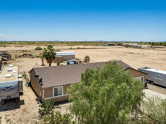 Beautiful and spacious 3 bed 2 bath home w/ 2 car garage, plus an extra garage/shop on 1.26 acres. Landscaped front and back, covered patio, storage building, chicken coop, fenced yard and back fenced for horses or other animals. Small community has shared well, mailboxes and trash collection for $50 per month with no HOA rules. Near Pinal County Fairgrounds and Eleven Mile Corner. Easy access to I-10 and I-8. Perfect for your place in the country, yet close to Casa Grande and Coolidge. Buyer to verify all pertinent information.