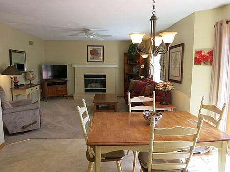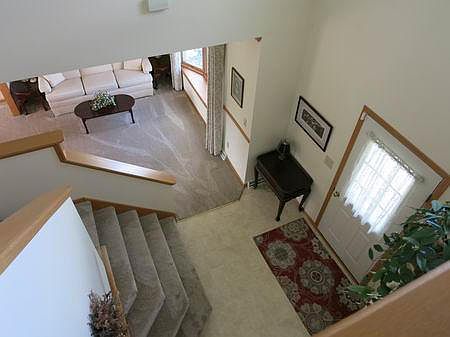 Bright open concept two story. Meticulously maintained both inside and out. Soaring two story foyer. Kitchen with peninsula, SS appliances and quartz countertops. Kitchen open to family room with natural brick fireplace. Living room open to formal dining perfect for entertaining. New carpet and flooring. Two sets of patio doors open to huge deck overlooking generous lot. Lower level is finished with tall ceilings, can lights, and large half bath. Master suite with private bath and WIC. Extra concrete parking pad next to garage. Garden shed included. Neutral decor. First floor laundry.