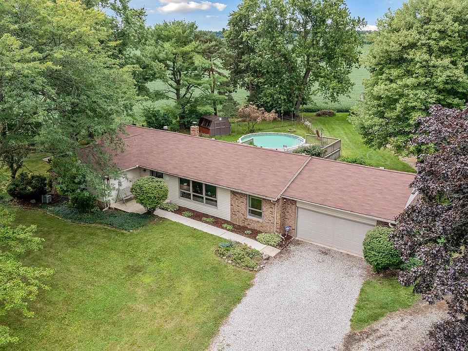 Beautiful ranch style home with sunken living room. The family room has a wood burning fireplace insert that is open to the kitchen. All the kitchen appliances are included. The formal dining room is beautiful. The master suite has a large master bath and walk in closet. There are two more bedrooms and a full bath on the main level. The laundry is located on main level too. The waterproofed basement has a finished rec room plus lots of storage. The showstopper of this home is the almost one acre lot, two car attached garage and an extra 2+ car garage plus a 16' x 16' storage shed. New water softner and well pressure tank, hot water heater new in 2021, roof is approximately 3 years old. You will love the above ground 24' swimming pool with a huge wrap around deck.