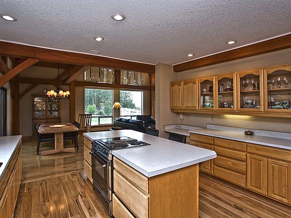 This dramatic timber frame home is timeless with wonderful big beams, spectacular vaulted ceilings, beautiful hickory floors & a super great room flr plan. It's very light & open with valley & mtn views. Designed for comfortable country living wth extra attention to energy efficiency & acoustics. 24x32 2 level shop. Land is part woods,part pasture wth a yr round creek & pond.