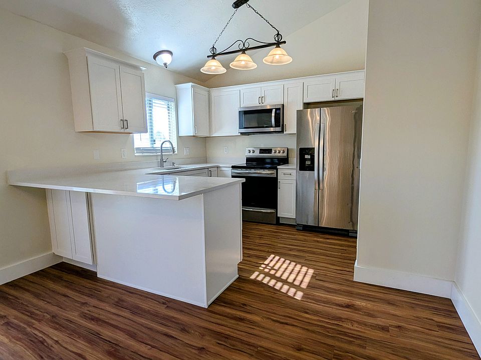 Large covered patioNewly remodeled kitchenStainless steel appliancesRevamped landscapingHeated primary bathroom floorVaulted ceilingsOpen and spacious layout