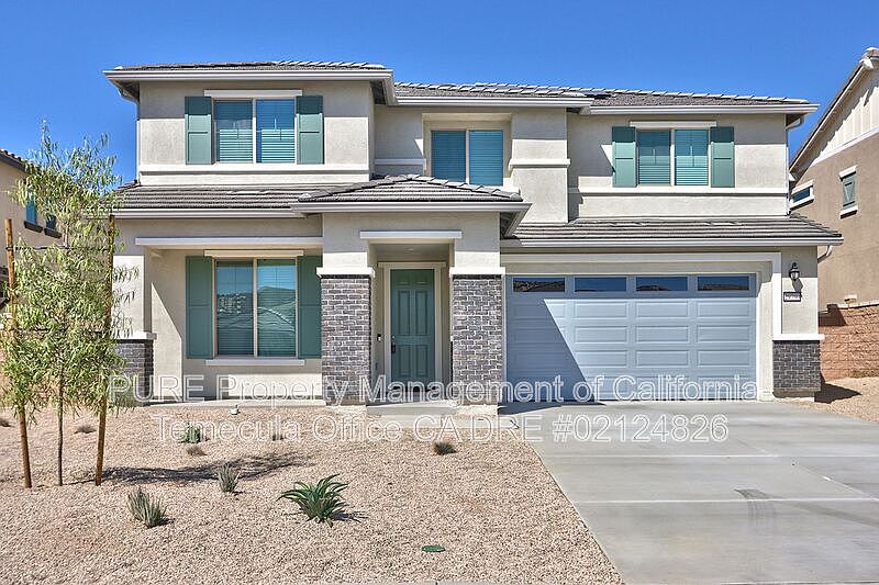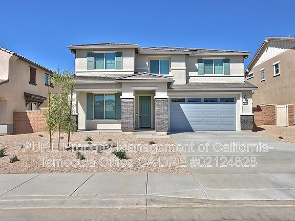 Welcome to this stunning brand new home located in the vibrant city of Menifee, CA. This property boasts five spacious bedrooms, including one conveniently located on the ground floor, perfect for guests or versatile living arrangements. With three full bathrooms, this home ensures ample space for everyone. The large loft area adds an extra dimension to the home, providing a perfect space for relaxation or entertainment. The spacious backyard is a blank canvas, ready for you to create your own outdoor oasis. As an added bonus, this home comes with solar included, offering a sustainable and cost-effective solution for your energy needs. Experience the perfect blend of comfort, style, and modern living in this beautiful Menifee home. Concrete and grass to be added to the backyard within a couple of months.