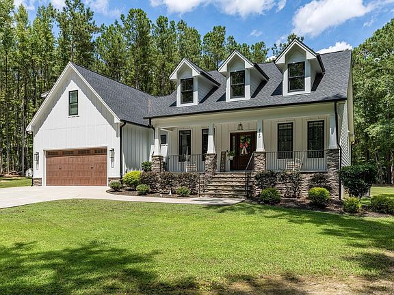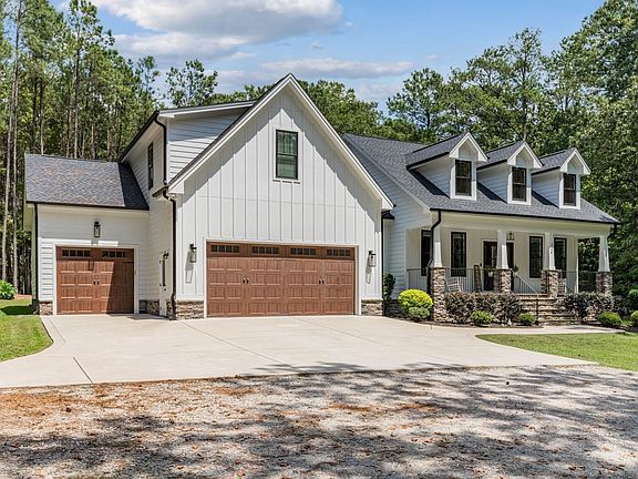 Beautiful custom built modern farmhouse in Clayton on 3 UNRESTRICTED acres. Open concept living with 4 bedrooms, 3 full baths, 3 car garage. First floor suite with oversized shower with dual heads, huge walk-in closet, lighted tray ceiling, 2 additional bedrooms and laundry on 1st floor. Quartz counters, large island, Bosch appliances with convection wall ovens, oversized walk-in pantry, wood shelving in all closets, custom trim work through out, reclaimed barn wood doors and mantle, truly no detail overlooked. Tankless hot water heater, 400 amp service ready for a future outbuilding, fully sealed and encapsulated crawlspace with dehumidifier, Hardie plank siding. Enormous bonus room with 4th bedroom and bath upstairs with an additional unfinished 1100 sq ft space that could easily be finished into a theatre room or second suite. Enjoy the wooded view off the roomy screened-in porch with EZ breeze windows. Quick commute to White Oak, restaurants and I-40.