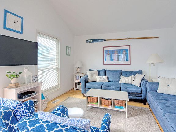 PRIVACY & SUNSETS TOGETHER WITH LOCATION MAKE THIS PROPERTY A MUST SEE! WALKING DISTANCE TO EVERYTHING! Only 2 short blocks to the beach, restaurants and 3 parks, track, bocce and basketball. This is the back unit of a unique front /back design allowing for more privacy with 3 designated parking spaces.. The bright and spacious second floor showcases a large family room with cathedral ceilings with direct access to a large private deck with southern exposure to enjoy full afternoon sun and beautiful sunsets. Also on this floor is a dining area , kitchen. large bedroom and a full hall bath. Lower level has three additional bedrooms one is currently being used as a home office, plus a shared full bathroom and a laundry room . There's off street parking for three cars, plus an outside shower, and a storage shed. 2021-05-20
