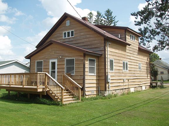 (353/DW) Be sure to see this 4 bedroom 1 1/2 bath home located on a corner lot on 7th Ave. in Park Falls. The home has a metal roof and a composite siding and features a new treated wood deck and front and real enclosed porches. The living room and dining room have wood floors and have been drywalled but the work needs to be completed. There are 2 carpeted bedrooms on the lower level. Kitchen and half bath complete the first floor. The upper level has a large sitting area at the top of the stairs, 2 carpeted bedrooms with built-ins and a full bath. Full rock/concrete basement. There is a 26x40’ metal garage with concrete floor and garage door opener. Listed at $79,900. See it today! 2021 taxes: $1,160.84. (Lot 10 of Block 5 and part of vacated alley of Grieve’s Addition to City of Park Falls, 23-40N-1W)