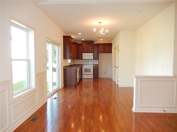 New Construction - RANCH SMART HOME! Covered entry opens to vaulted great room has wide plank wood like laminate floor and is wired for flat screen TV. Kitchen boasts maple stained cherry cabinets, quartz tops, oiled bronze faucet w/soap dispenser, dishwasher, microwave & stove. Vaulted master suite features waintscot, walk in closet, ceramic bath w/solid surface maple cabinet, oiled bronze faucet & fixtures,crown molding. Ceramic hall bath has solid surface top vanity, oiled bronze fixtures & crown molding. Bedrooms 2 & 3 have crown molding as well. Pocket door opens to 1st floor laundry/mud room w/ceramic floor & shelves. Other amenities of the home include soft close drawers, oiled bronze lever handles on doors, plumbing for bath in lower level, keyless entry & 9' ceilings.
