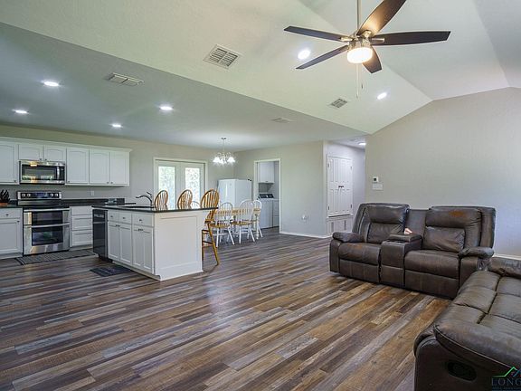 Welcome to your dream home in Harleton ISD! This less than a year old, 4-bedroom, 3-bathroom gem is located on approximately 10 acres of beautiful countryside, with the perfect outdoor living space. As you step into this beautiful home, you'll be greeted by an open concept floor plan that seamlessly combines the living, dining, and kitchen areas. The home boasts energy-efficient features, ensuring your comfort while minimizing your environmental footprint. The kitchen is a chef's delight, featuring stunning granite countertops and luxury vinyl flooring, which adds an elegant touch to the space. You'll find ample cabinet space for all your storage needs, and the oversized breakfast bar provides the ideal spot for casual dining or entertaining guests. With plenty of kitchen counter space, meal prep and cooking are a breeze. For those who appreciate the great outdoors, this property has it all. The expansive outdoor space is a haven for avid hunters, offering endless opportunities for outdoor adventures right in your backyard. There's also plenty of space for building your own shop, and parking, which makes it convenient for both residents and guests. Don't miss your chance to own this newly build, energy-efficient home on 10+- acres of beautiful Harleton property. Make this your sanctuary and start living the life you've always dreamed of. Schedule a viewing today to experience the true essence of this remarkable property!