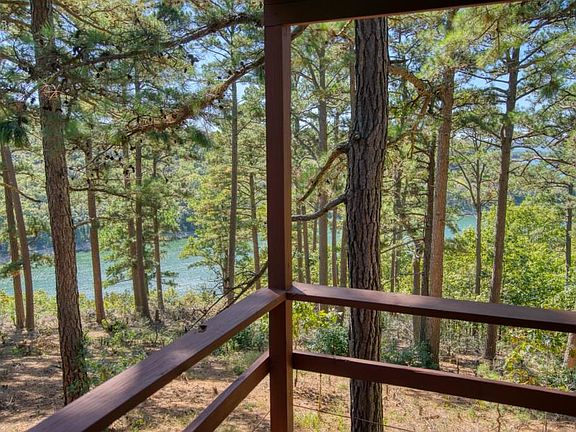 Perched at the end of the road on a 3+ acre lot, this Beaver Lake home has a beautiful view of the water through a grove of large pine trees! This could be your ticket to full time living at the lake or an inexpensive weekend getaway. If you need more space, there is plenty of room on this lot to build a larger home! Brand new central heat and air, fresh paint, new flooring, an open floor plan, garage or shop space, and a 10x10 storage shed! The lower part of this property holds large bluffs and a cave that is just waiting to be explored!